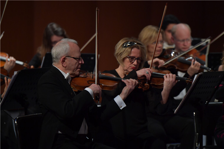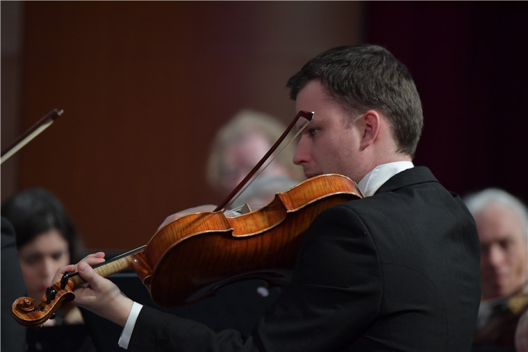 ? ?音樂會在莫扎特《魔笛序曲》中拉開帷幕。德國柏林交響樂團的音樂家們用精湛技藝為觀眾獻上了一道道新年藝術(shù)大餐。貝多芬《第7交響曲》“舞蹈頌贊”、門德爾松《芬格爾山洞序曲》、德沃夏克兩首《斯拉夫舞曲》、勃拉姆斯兩首《匈牙利舞曲》、約翰斯特勞斯《蝙蝠序曲》等經(jīng)典樂曲,時而柔情婉約,時而激昂高亢,充分呈現(xiàn)了音樂藝術(shù)的繽紛華麗和超越時空界限的無窮魅力。整場音樂會高雅大氣、精彩紛呈,觀眾對音樂家們的精彩演出不時報以熱烈掌聲。